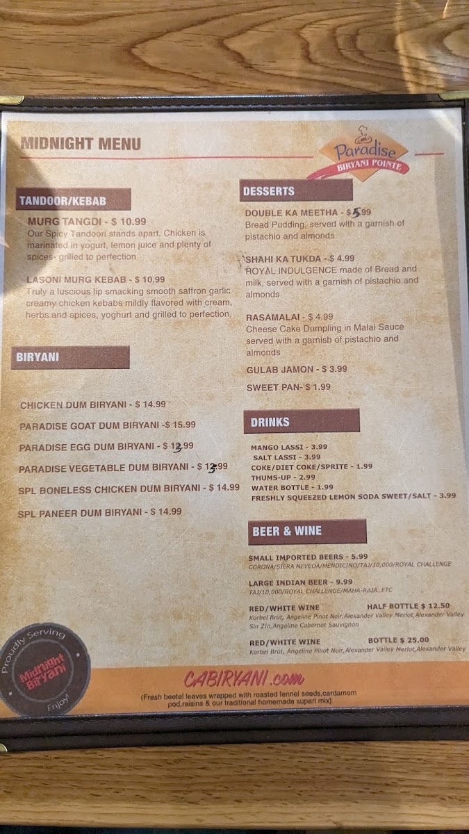 The highlight, however, is their delectable biryanis, praised by customers for exquisite flavor and freshness. With options to cater to varied tastes and generous portions, Paradise Biryani Pointe is perfect for those late-night cravings, as they stay open till midnight, making every visit worth it!